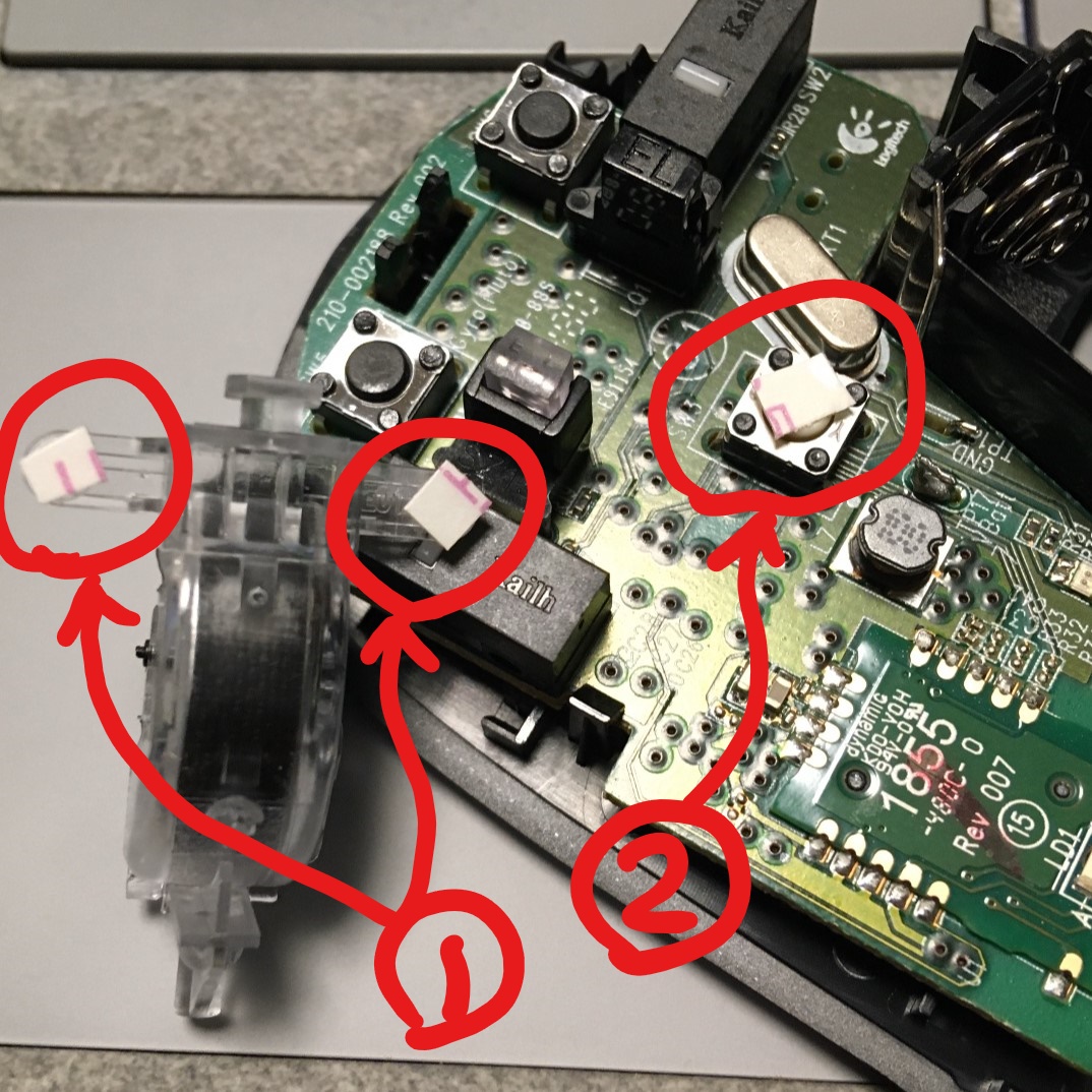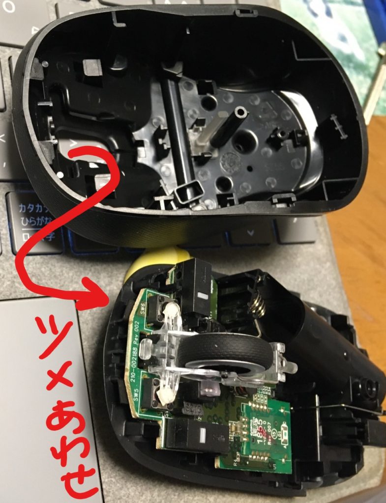 指でくるっと回すと「シャー」っと回転する軽いホイール。またホイールボタンを押す動作がちょいと深めで、チルトではガタツキを感じる。回転に関して、わしの使い方ではちょっと軽く回り過ぎ、ついでにガタツキも抑えられるか、分解し調整してみる。あくまでも自己責任ですぞ